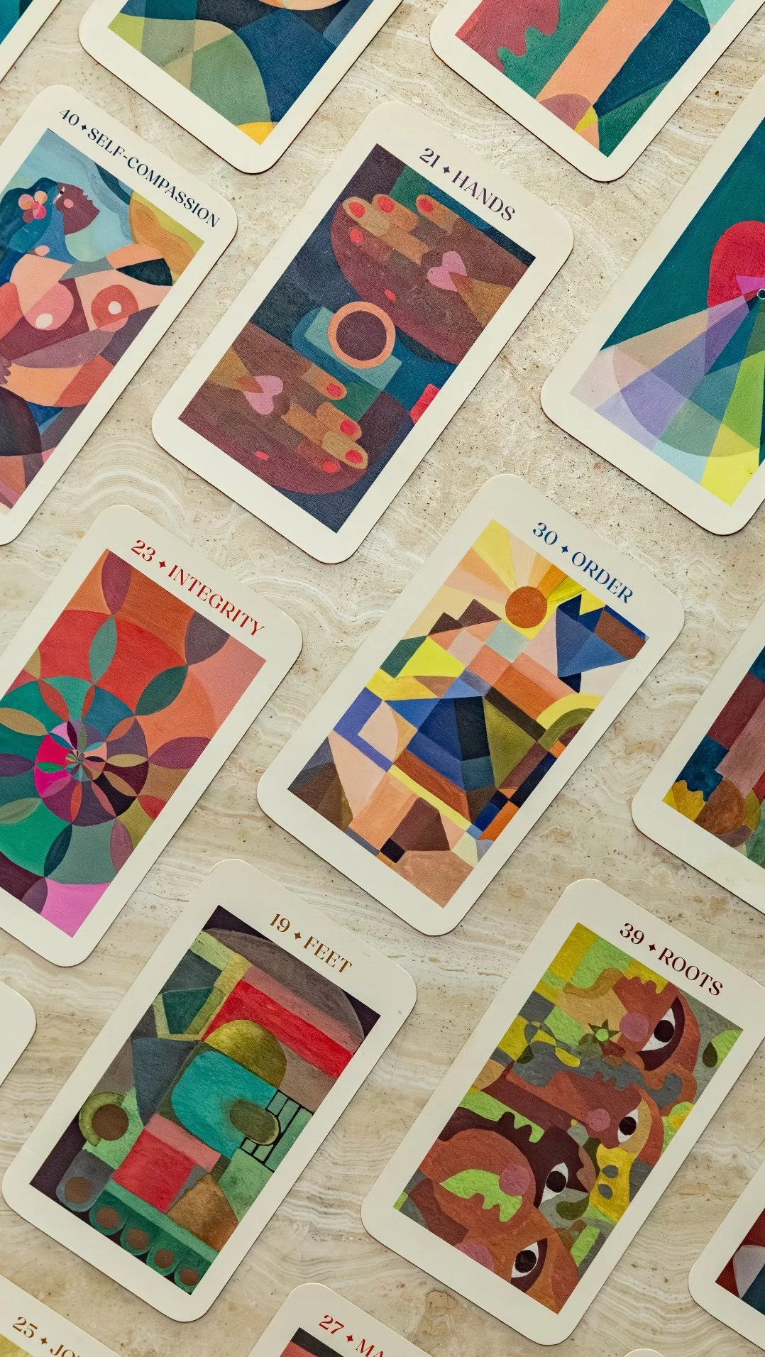 As a deeply visual thinker and feeler, I’ve always connected to the imagery on the cards just as much as the words. Shapes, colors, and symbols speak to me in a language beyond logic. I began using oracle cards not only for spiritual guidance but as prompts for journaling, intention-setting, affirmations, and creative exploration. Over time, I dreamed of designing my own deck — one that reflected my world of pattern, feeling, and soul.